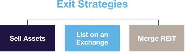 A nonlisted REIT has all of the above characteristics but its shares are not listed on a public exchange. A nonlisted REIT is focused on buying and managing new assets purchased in the private real estate market. Eventually, as part of its lifecycle, a nonlisted REIT may list on an exchange or may merge with or be sold to a listed REIT. However, nonlisted REITs do not offer the liquidity of listed REITs and there is no assurance that a nonlisted REIT will have a liquidity event. Investors in nonlisted REITs generally are seeking income from distributions over a period of years. Listed and nonlisted REITs are registered with and regulated by the Securities and Exchange Commission (SEC).
